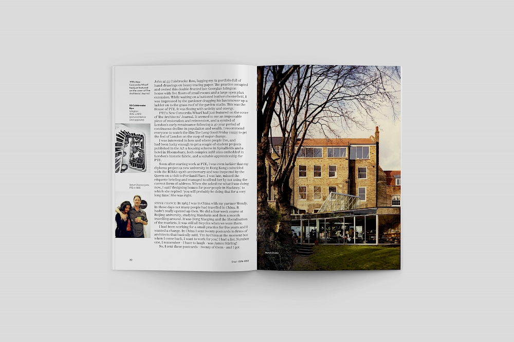 Tim, PTE’s longstanding comms partner, is the designer of House of PTE: an oral history of Pollard Thomas Edwards. As well as designing and typesetting every page, Tim designed the cover, selected the typography and sourced almost all of the imagery in the book, including photos of buildings and people, and the occasional drawing.