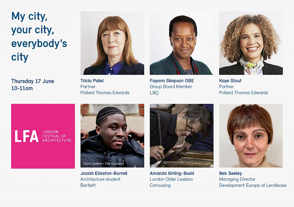 An online chaired debate with audience participation (using interactive mobile apps) and chaired questions and answers involving female partners from women-led practice Pollard Thomas Edwards alongside clients and industry figures including: