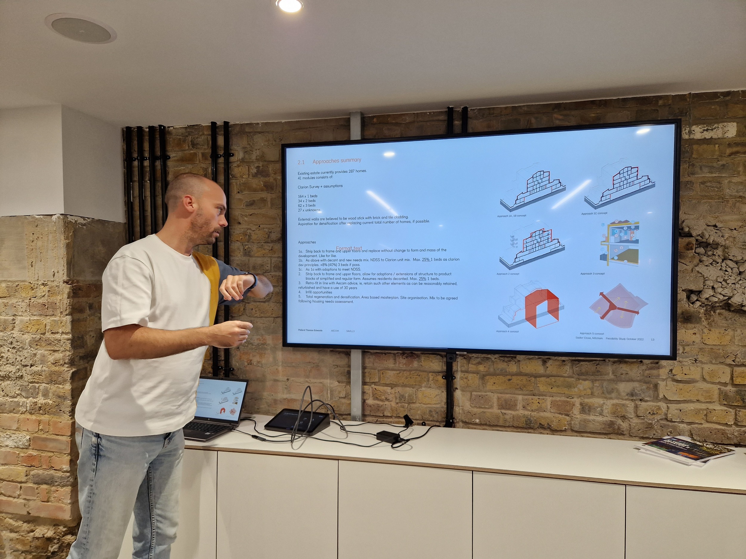There were three surgeries this month. The sustainability surgery, led by partner Simon Whitley, explored the opportunities and constraints of light, partial and deep retrofit. Meanwhile, Alexander Dixon held a drop-in IT surgery and Laura Binaburo and Javi Martín hosted a BIM surgery.
