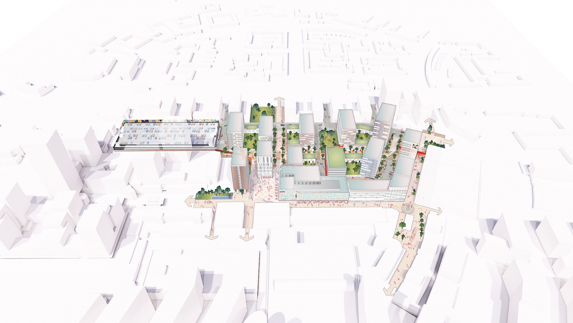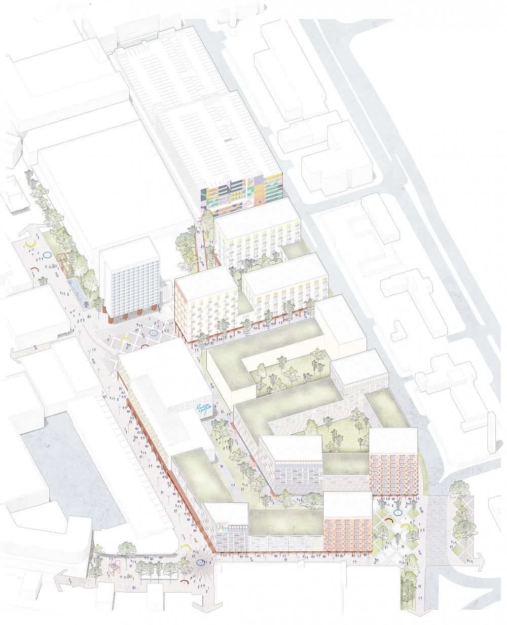 Great Oaks Quarter is a mixed-use development of 500 new homes and a range of flexible commercial and leisure uses in Basildon town centre. The proposals redevelop car parks and the former Basildon Post Office site, consolidating parking to unlock sites for development. The project will create a dynamic urban quarter and multigenerational neighbourhood, including PTE’s East Square cinema, currently under construction.