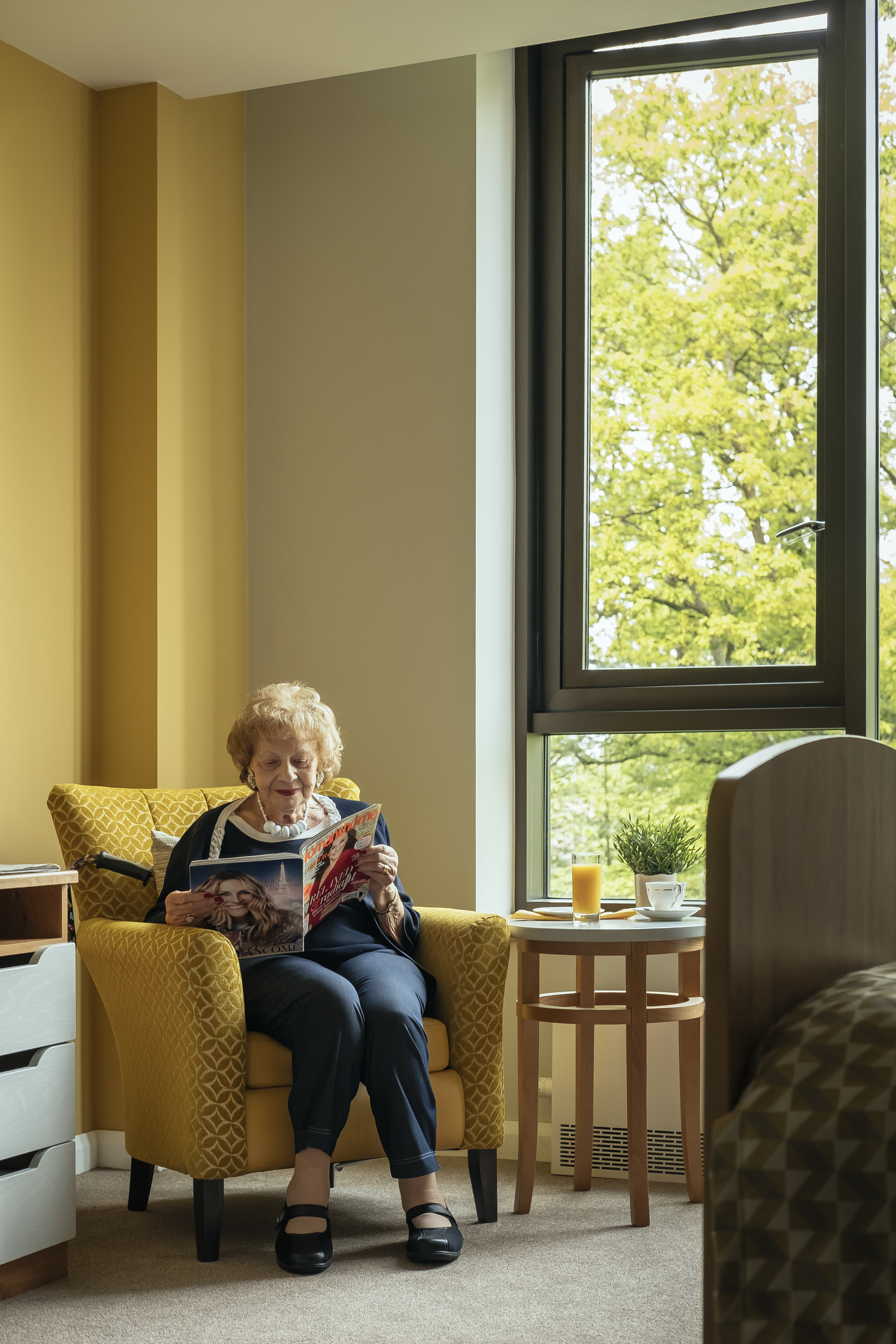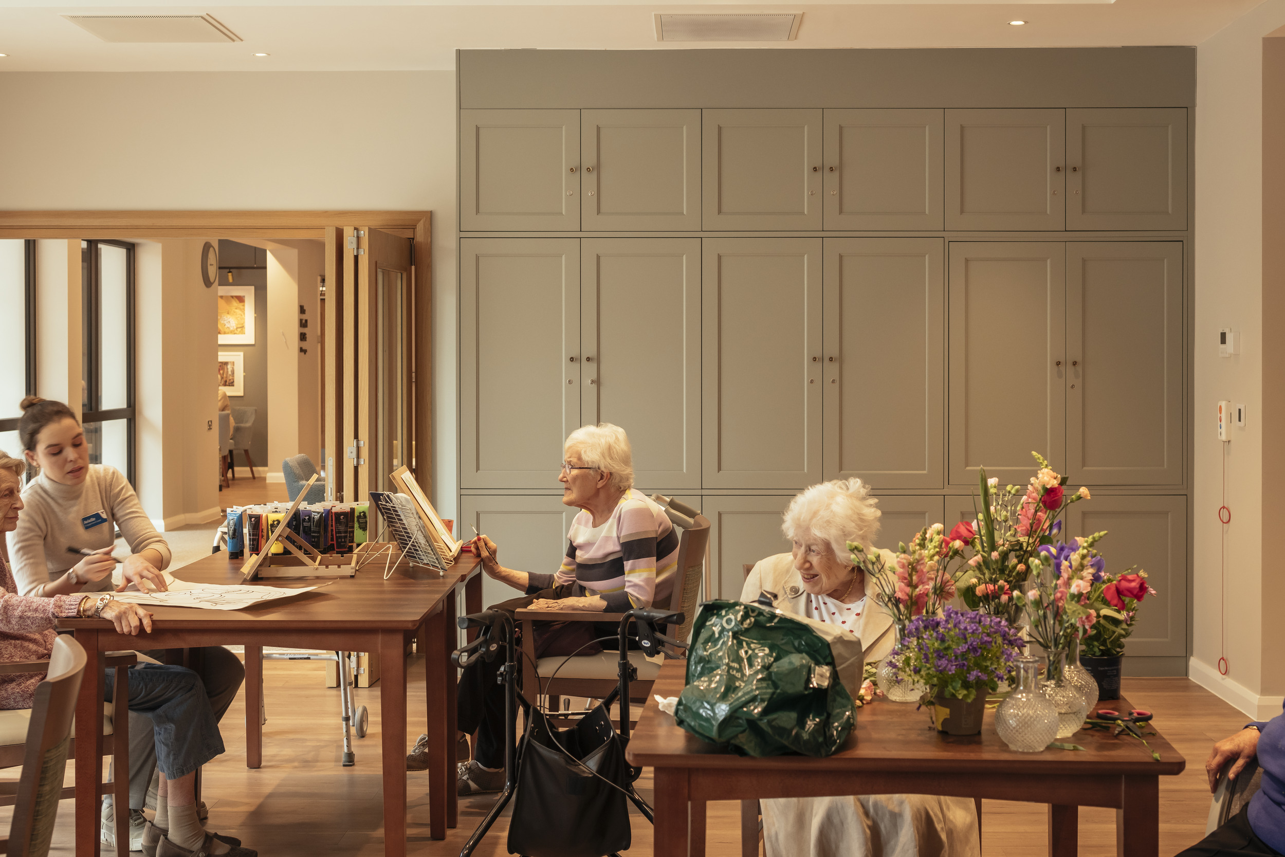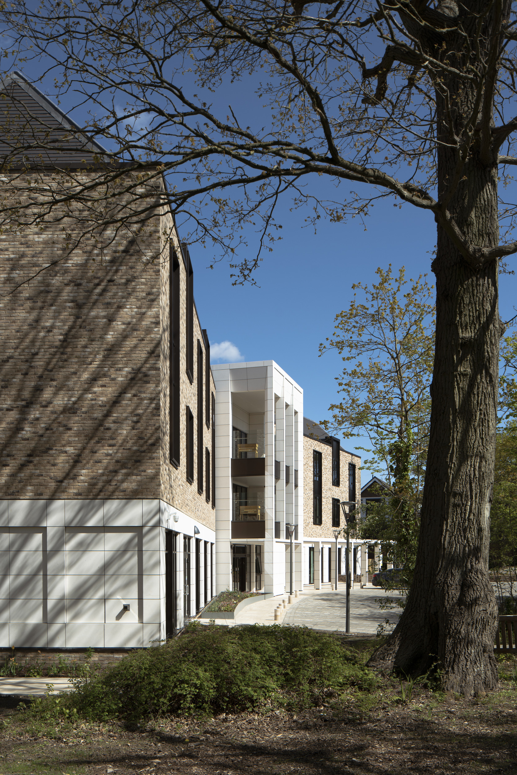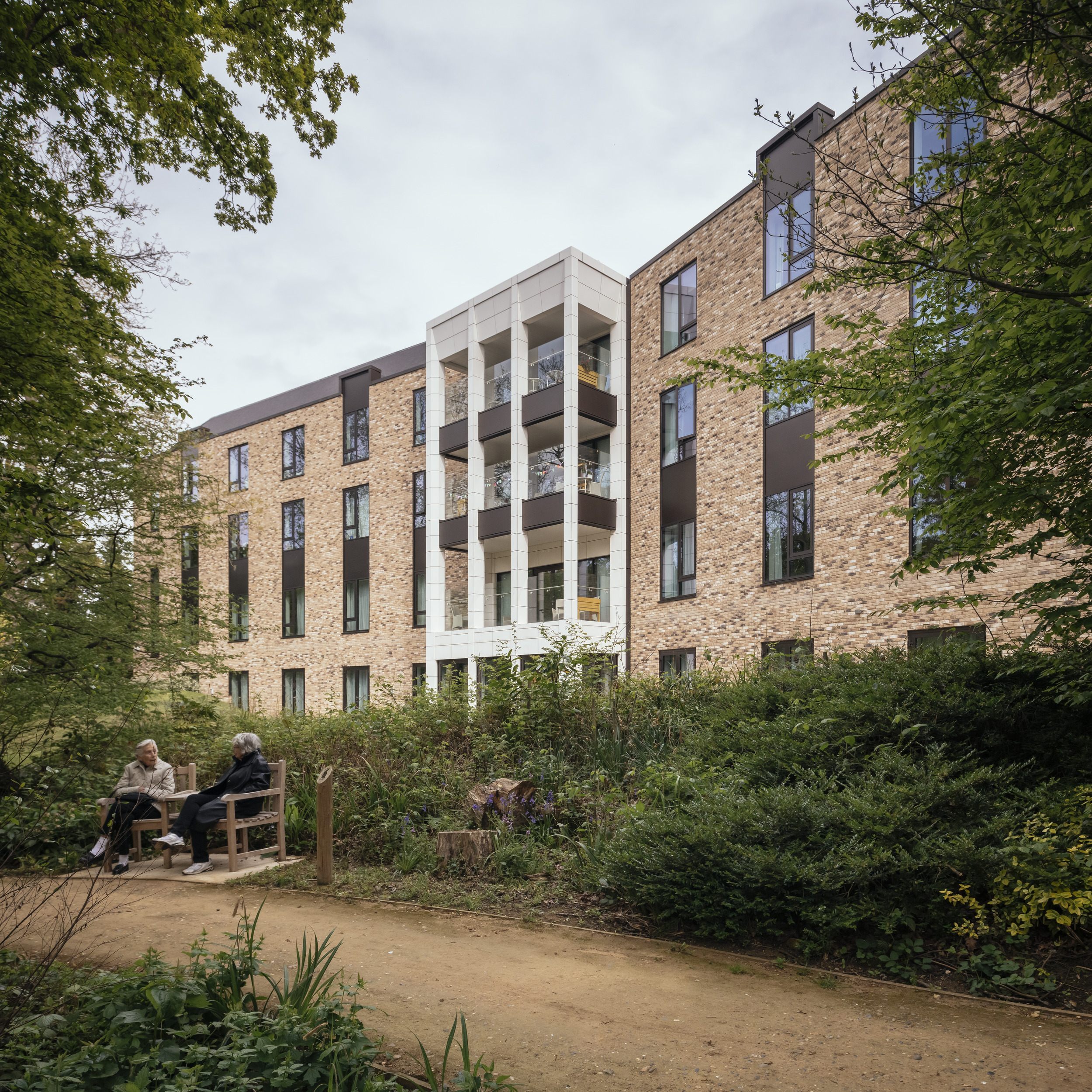 Replacing an existing care home that has become impractical, this new comprehensive redevelopment provides exemplary care for older people with dementia. The vision of the scheme is to provide a home with a small ‘h’, and to maximise connections with the natural environment, with well-lit internal spaces and connections to the existing mature landscape. After exploring various options on the plans to achieve these ends, the completed scheme orientates the internal bedroom layout to maximise daylight and views to the outside for the bedrooms.