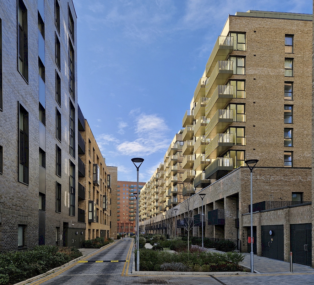 A new urban quarter with over 500 homes near Walthamstow town centre, featuring a street network, public square and linear park. Detached mansion blocks line the railway boundary and provide every home with an outlook towards quiet gardens.