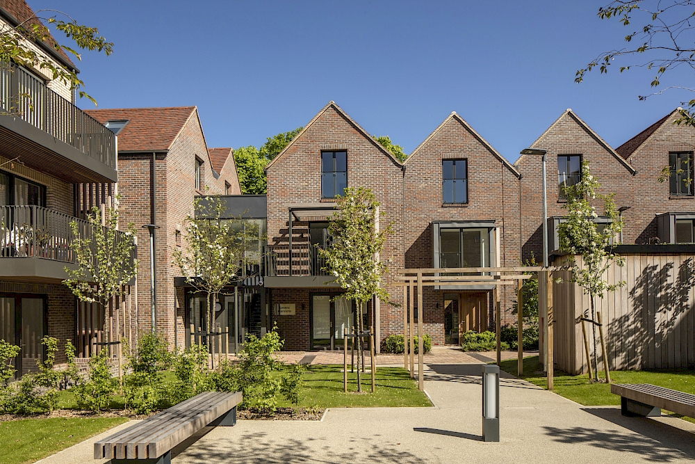 This beautiful micro-neighbourhood provides 138 apartments for independent older people in new garden villas and restored heritage buildings, integrated with 21 innovative family houses. Intricate design, exemplary placemaking and intensive local engagement overcame the challenges of landscape and building conservation, steep gradients and sensitive boundaries.