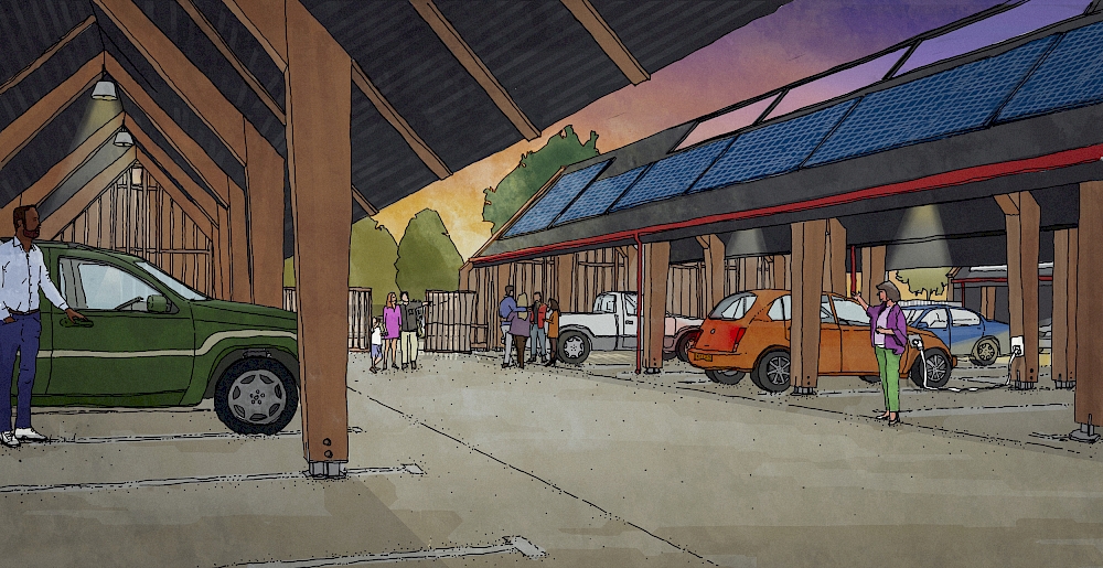 The most striking feature of the development are the parking barns which will cater for any additional cars. The barns are no more than a couple of minutes’ walk from new homes and provide secure indoor off-street parking and charging for resident’s additional cars and other vehicles. Drawing their look from local farm buildings, they can be easily adapted for other community needs as car use changes in years to come.